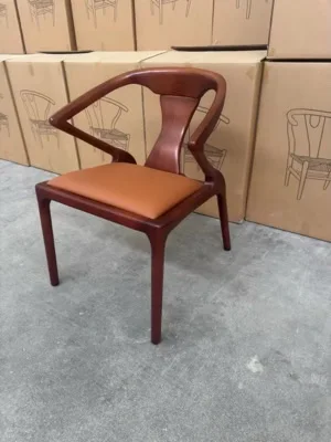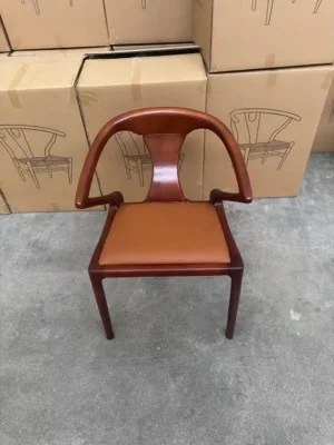 Wooden Nordic Light Luxury Hotel Cafe Leather Upholstered Stackable Dining Chair